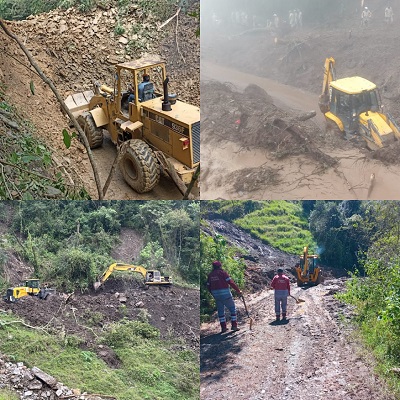• Tlanchinol: Retiro de mil 200 metros cúbicos de material derrumbado en la carretera estatal Tlanchinol–Apantlazol–Olotla, a la altura del kilómetro 1+800.