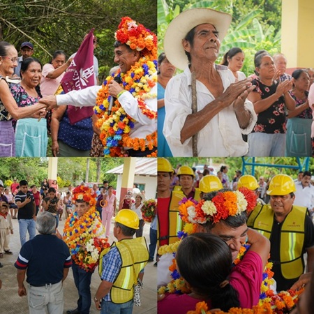 El edil fue recibido con gran entusiasmo por niñas y niños de escuelas de nivel básico, acompañados de sus docentes, padres y madres de familia, además de autoridades y vecinos de la localidad, quienes lo recibieron con coronas y collares de flores, en un ambiente de fiesta y esperanza por la transformación de su comunidad, ya que aseguraron que llevaban más de dos décadas esperando dicha obra.