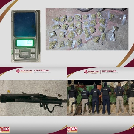 La Secretaría de Seguridad Pública de Hidalgo (SSPH) en coordinación operativa con la Procuraduría General de Justicia del Estado de Hidalgo (PGJEH), la Secretaría de la Defensa Nacional (Sedena) y la Guardia Nacional (GN), aseguró a una célula delictiva que operaba en la colonia El Saucillo, municipio de Mineral de la Reforma. Durante el despliegue, elementos estatales intervinieron un punto identificado por actividad ilícita, donde fueron asegurados dos individuos, uno de ellos con antecedentes penales por robo calificado, quienes presuntamente participaban en actividades de narcomenudeo.