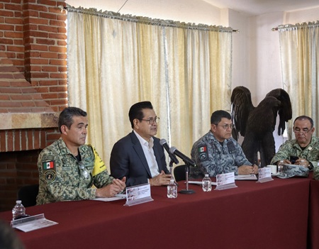 El secretario de Gobierno, Guillermo Olivares Reyna junto con el comandante de la 18/a Zona Militar, general de brigada del Estado Mayor Hugo Humberto Pedroza Salazar, y el delegado de Programas para el Bienestar en Hidalgo, Abraham Mendoza, se reunieron con presidentes municipales de las zonas afectadas por la vaguada monzónica, con el fin de coordinar la entrega de apoyos a las comunidades.