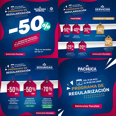 Para incentivar la actualización de permisos, pagos y servicios municipales, el Ayuntamiento de Pachuca presentó el Programa de Regularización 2025, una iniciativa que contempla diversos estímulos fiscales disponibles del 21 de noviembre al 19 de diciembre en distintas dependencias.