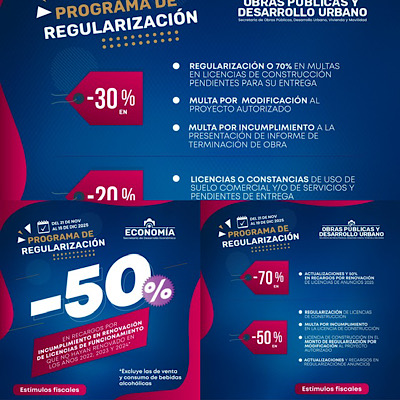 • 30% en regularización o 70% en multas de licencias de construcción pendientes por entregar.