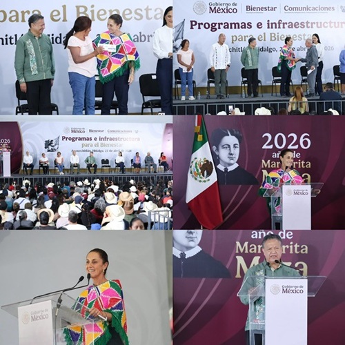 Ante miles de habitantes de esta zona de la Otomí-Tepehua, la titular del Ejecutivo federal y el mandatario hidalguense entregaron tarjetas de los Programas del Bienestar a beneficiarios y beneficiarias de la región, entre ellas la señora Ángela Vargas, quien agradeció a la primera mujer presidenta de México por apoyar a las mexicanas a través de estrategias la como la pensión para mujeres de 60 a 64 años.