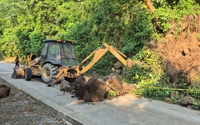 En Xochicoatlán se realizó el retiro de material producto de derrumbe en el camino rural Jalamelco–Texcaco, así como suministro de combustible para que la maquinaria siga trabajando.