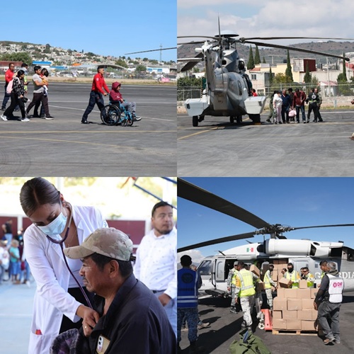 Desde el inicio de la emergencia, se han realizado 378 vuelos, se han habilitado 61 albergues, en los cuales hay 127 personas; se han entregado 114 mil 855 despensas, de las cuales 79 mil 069 han sido entregadas vía terrestre y 35 mil 786 vía aérea.