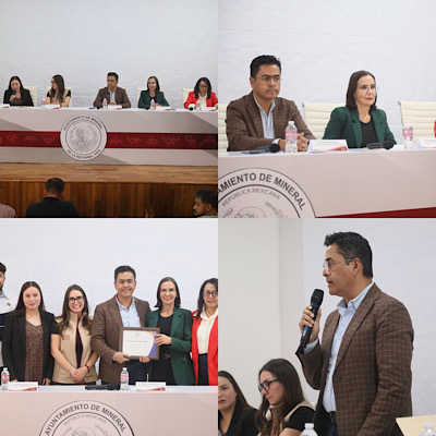 Por segunda ocasión consecutiva, la comisionada presidenta del Instituto de Transparencia y Acceso a la Información Pública Gubernamental (ITAIH), Myrna Moncada Mahuem, entregó una Constancia al presidente municipal de Mineral de la Reforma, Eduardo Medécigo Rubio, por haber obtenido una calificación de 10 en la materia.