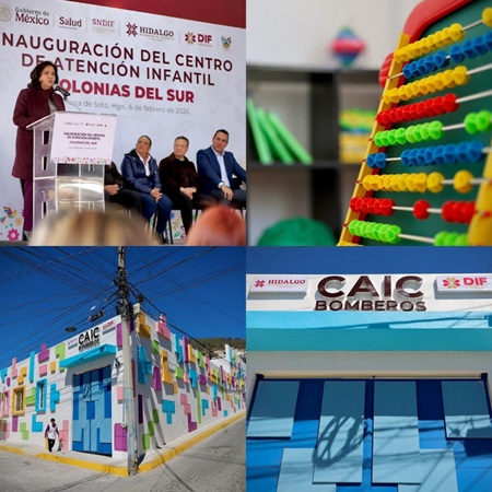 Acompañada de María del Rocío García Pérez, titular del Sistema Nacional DIF (SNDIF), y de Julio Menchaca Salazar, gobernador de Hidalgo, Edda Vite Ramos, presidenta del Patronato del Sistema DIF Hidalgo, inauguró los nuevos Centros de Asistencia Infantil Comunitarios (CAIC) Colonias del Sur y Bomberos, espacios diseñados para brindar atención, cuidado y oportunidades de desarrollo integral a niñas y niños de la entidad.
