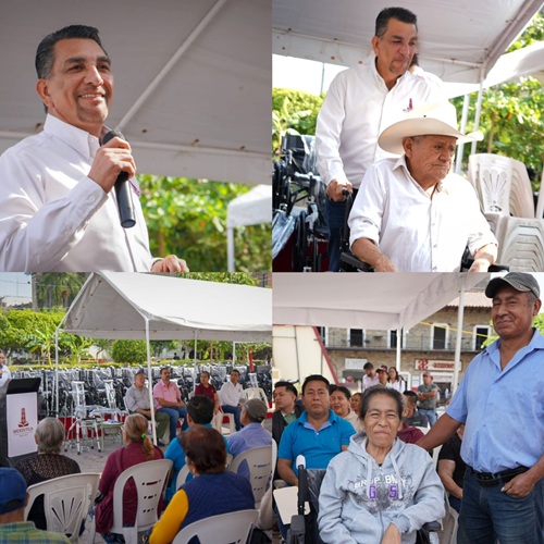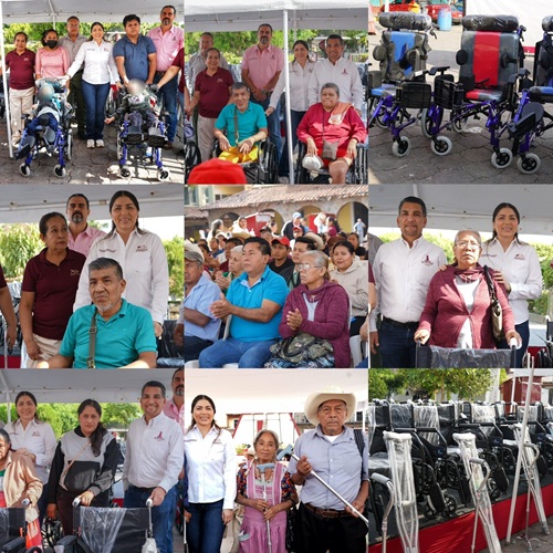 - El presidente Municipal, José Alfredo San Román Duval y la Dra. Kristel Rodríguez, presidenta del Sistema DIF Municipal, encabezaron la entrega gratuita de andaderas, sillas de rueda, sillas PCI, sillas PCA, muletas y otros beneficios a niños, jóvenes y adultos en vulnerabilidad