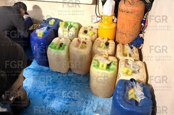 La intervención se realizó en compañía de elementos del Centro Federal Pericial Forense y de la Policía Federal Ministerial (PFM) ambos de la Agencia de Investigación Criminal (AIC), quienes aseguraron dos camionetas, 100 metros de manguera, 17 garrafones de plástico y aproximadamente 850 litros de hidrocarburo.