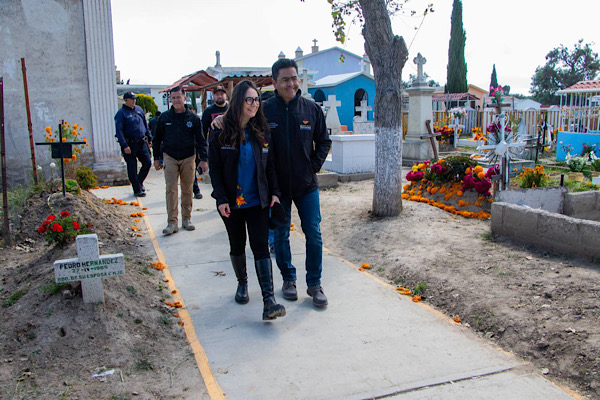 El alcalde de Mineral de la Reforma, Eduardo Medécigo Rubio, y la presidenta del Sistema Municipal DIF, Samantha Esparza Hernández, ofrecieron tamales y café, así como ramos de la tradicional flor de cempasúchil, a los visitantes y a quienes decidieron pernoctar en los tres panteones con lo que se cuenta en la localidad.