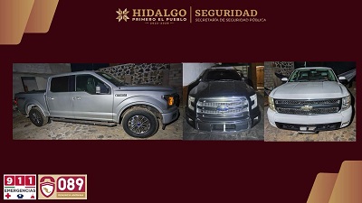 Como resultado, se ejecutaron dos cateos en la zona, con la participación de la Secretaría de la Defensa Nacional (Sedena) y las policías municipales de Tulancingo de Bravo y Santiago Tulantepec. Durante estos operativos se recuperaron las tres camionetas que presuntamente habían sido vendidas por las personas desaparecidas, además de asegurar a cinco individuos.