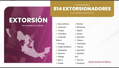 En materia de extorsión, Hidalgo se posiciona dentro de las 24 entidades con mejores resultados en el combate a este delito, derivado de estrategias de prevención, atención oportuna y fortalecimiento de los mecanismos de denuncia, particularmente a través del 089 y el 911, lo que ha permitido inhibir este delito y proteger a la población.