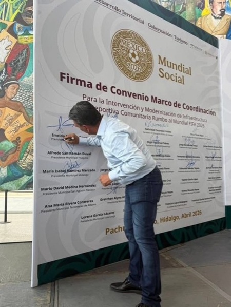 En este marco, el presidente municipal de Huejutla, Alfredo San Román Duval, participó en la Firma del Convenio Marco de Coordinación para la Intervención y Modernización de Infraestructura Comunitaria, así como en la conformación del Comité Estatal de Proyectos Comunitarios, realizada este 15 de abril en la ciudad de Pachuca. Este encuentro reunió a autoridades de los tres órdenes de gobierno, entre ellos Julio Manuel Valera Piedras, titular de la Oficina de Representación de la SEDATU en Hidalgo; Natividad Castrejón Valdez, secretario de Educación Pública en el estado; y Óscar Pérez Rojas, director general del Instituto Hidalguense del Deporte.