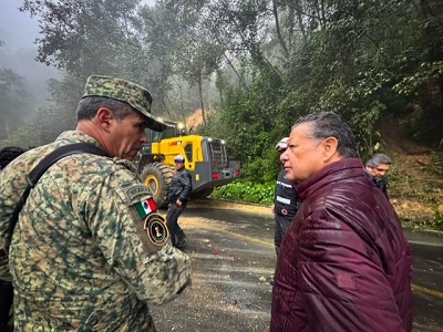 Entre las afectaciones que el gobernador constató, es que aún hay desgajamientos en diversos puntos carreteros.