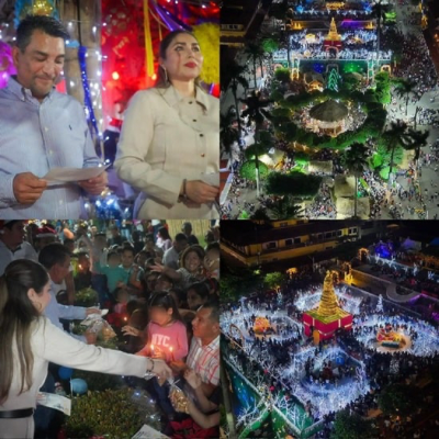 En un ambiente colorido y de gran alegría, el PresidenteMunicipal, Lic. José Alfredo San Román Duval y la Dra. Kristel Rodríguez Flores, Presidenta del Sistema DIF Huejutla, encabezaron el encendido del Pino y la Villa Navideña, instalados en la zona Centro de la ciudad, acompañados de familiares, amigos y cientos de asistentes que se reunieron para dar la bienvenida a esta época festiva.