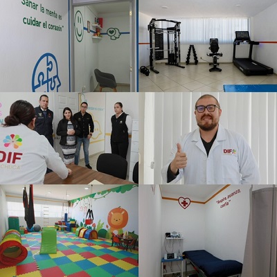 También se reorganizaron los cubículos de fisioterapia y se añadieron camas, colchonetas, compresas, electrodos y material deportivo como mancuernas, equipo multifuncional, TRX, bicicleta y caminadora. Asimismo, se colocaron cortinas antibacterianas y se integró material didáctico y de estimulación para la atención infantil.