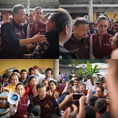 En su visita a Hidalgo, la presidenta Claudia Sheinbaum estuvo en comunidades de Huehuetla y Tianguistengo, dos de los municipios más afectados por las lluvias, donde reiteró el apoyo de su gobierno para la atención a la emergencia y posteriormente la recuperación.