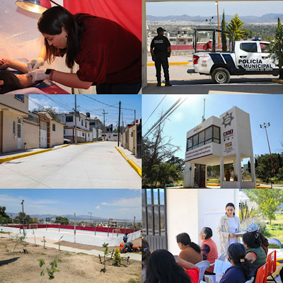 En materia de infraestructura urbana, el municipio ha avanzado en la pavimentación de calles, con lo que se mejora la movilidad y las condiciones de tránsito en la zona. De igual forma, se instalaron 75 luminarias tipo LED y se rehabilitaron 60 lámparas existentes, contribuyendo a una mejor iluminación nocturna y a la reducción de puntos de riesgo para las familias.