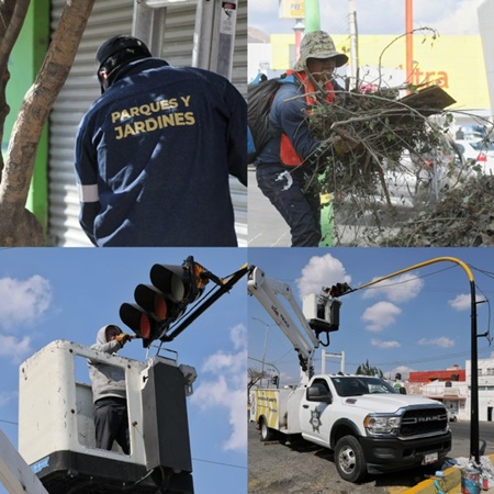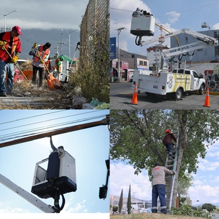 Las acciones contemplan la atención de alumbrado público, mantenimiento de áreas verdes en camellones centrales, pinta de guarniciones, rehabilitación de pasos peatonales y la actualización de la señalización vertical y horizontal. De manera complementaria, se realiza el ordenamiento de espacios de estacionamiento para automóviles, personas con discapacidad, motocicletas y áreas de carga y descarga, así como el mantenimiento y puesta en funcionamiento de semáforos en puntos estratégicos de la ciudad.