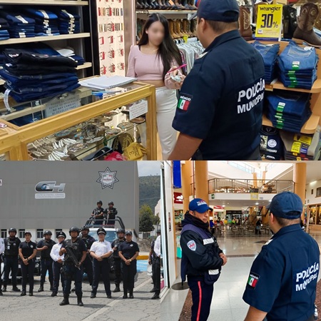 El operativo se desarrolló en plazas y corredores comerciales como Gran Patio, Del Valle, Vértice, Explanada, Chedraui, Soriana Tutelar, Perisur, Plaza de las Américas, Galerías, y en la zona del Centro, donde se reforzó la presencia institucional para ofrecer condiciones de seguridad a quienes acudieron durante el periodo.