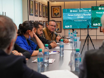 Para explicar los alcances y beneficios del proyecto del Parque Ecológico y de Reciclaje de Hidalgo (PERH), el subsecretario de Desarrollo Sostenible y Economía Circular de la Secretaría de Medio Ambiente y Recursos Naturales (Semarnat) del Gobierno de México, José Luis Samaniego Leyva, y el secretario de Gobierno de Hidalgo, Guillermo Olivares Reyna, ofrecieron reuniones informativas.