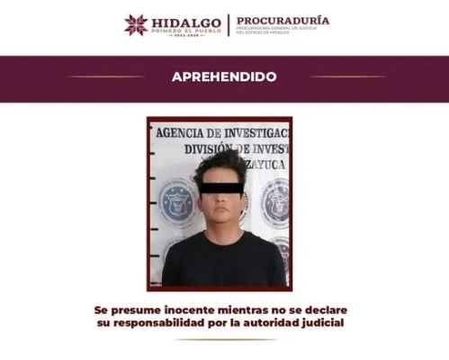 El probable fue aprehendido en la colonia El Potrero 2, en el municipio de Tizayuca, luego de que está procuraduría recibiera la solicitud de colaboración por parte de la Fiscalía General de Justicia del Estado de Veracruz, para dar cumplimiento al mandamiento judicial.