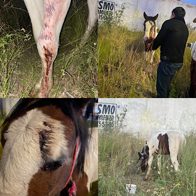 Al llegar al lugar, los especialistas se percataron de que el caballo se encontraba amarrado con un lazo, con evidentes heridas en la parte frontal del rostro, ojo izquierdo, trufa y mano izquierda.