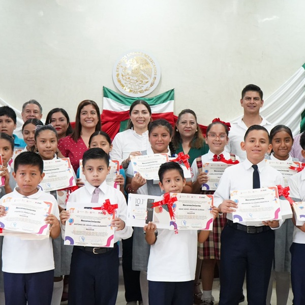 De igual forma y en representación del presidente Municipal Alfredo San Román Duval, entregó reconocimientos y tabletas a las y los niños participantes, exhortándoles a seguir preparándose académicamente e ir siempre por la conquista de sus sueños.