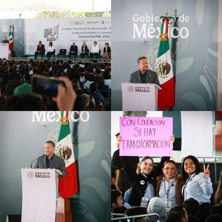 El titular del Ejecutivo de Hidalgo también reconoció el respaldo de la presidenta, quien ha acudido en 12 ocasiones a la entidad, tres de ellas para atender la emergencia que se registró por las lluvias torrenciales; además, el mandatario celebró que Innovatec sea una demostración del talento del alumnado de los tecnológicos, que enfrenta el presente y el futuro de una mejor manera.