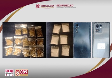 Asegura SSPH a dos individuos con 500 dosis de droga en Mineral de la Reforma