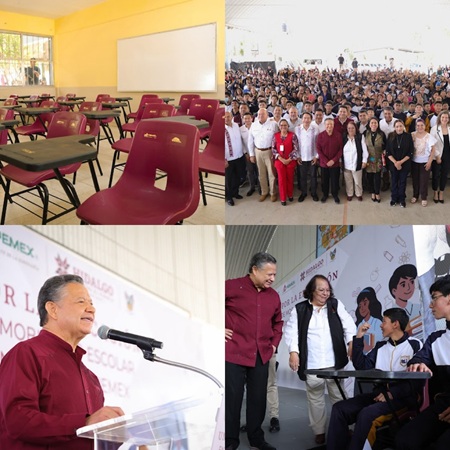 Con el firme propósito de fortalecer la infraestructura educativa en la entidad, el gobernador de Hidalgo, Julio Menchaca Salazar, recibió por parte de Petróleos Mexicanos (Pemex) un donativo de 200 paquetes de mobiliario escolar, que forma parte de los esfuerzos de colaboración entre la empresa productiva y el Despacho del Gobernador.